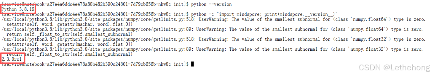 # 应该显示: Python 3.8.x# 3. 验证MindSpore和昇腾适配(看到版本号 2.3.0rc1 说明MindSpore已成功安装!)