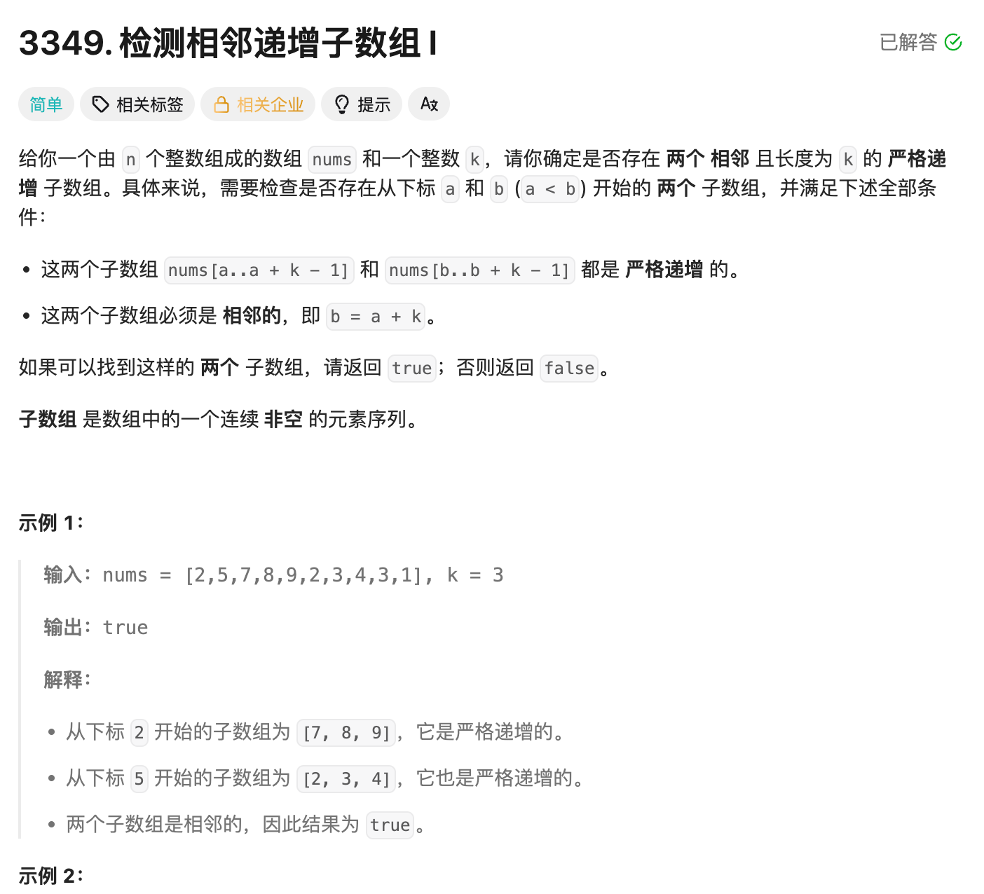 本文介绍检测相邻递增子数组1 & 2的思路以及解法。