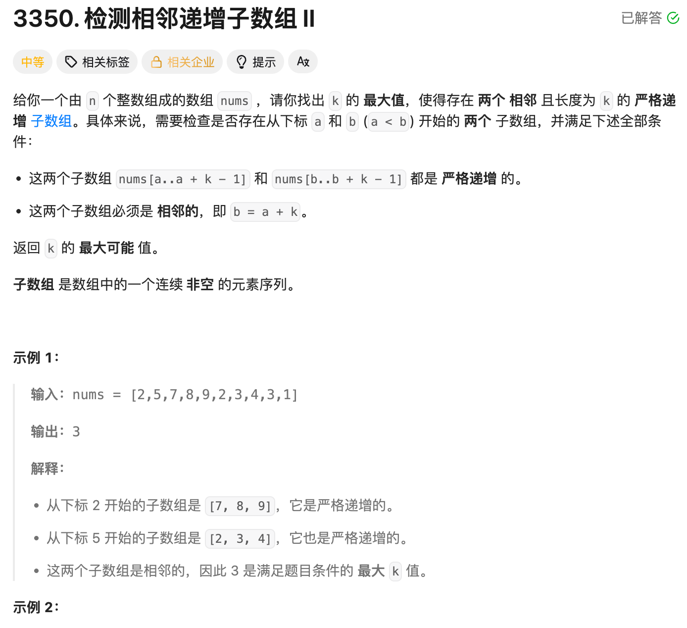检测相邻递增子数组1 2(LeetCode 3349 3350)