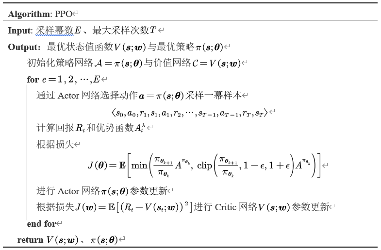 J(θk+1)=E(s,a)πθk[min(πθk+1(s,a)πθk(s,a)Aπθk(s,a),clip(πθk+1(s,a)πθk(s,a),1−ϵ,1+ϵ)Aπθk(s,a))]J\left( \boldsymbol{\theta }_{k+1} \right) =\mathbb{E} _{\left( \boldsymbol{s},\boldsymbol{a} \right) ~\pi _{\boldsymbol{\theta }_k}}\left[ \min \left( \frac{\pi _{\boldsymbol{\theta }_{k+1}}\left( \boldsymbol{s},\boldsymbol{a} \right)}{\pi _{\boldsymbol{\theta }_k}\left( \boldsymbol{s},\boldsymbol{a} \right)}A^{\pi _{\boldsymbol{\theta }_k}}\left( \boldsymbol{s},\boldsymbol{a} \right) , \mathrm{clip}\left( \frac{\pi _{\boldsymbol{\theta }_{k+1}}\left( \boldsymbol{s},\boldsymbol{a} \right)}{\pi _{\boldsymbol{\theta }_k}\left( \boldsymbol{s},\boldsymbol{a} \right)},1-\epsilon ,1+\epsilon \right) A^{\pi _{\boldsymbol{\theta }_k}}\left( \boldsymbol{s},\boldsymbol{a} \right) \right) \right] J(θk+1)=E(s,a) πθk[min(πθk(s,a)πθk+1(s,a)Aπθk(s,a),clip(πθk(s,a)πθk+1(s,a),1−ϵ,1+ϵ)Aπθk(s,a))]