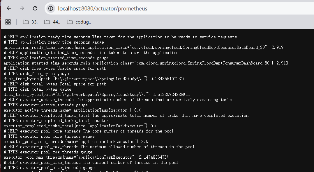 http://localhost:8080/actuator/prometheus查看 - 根据错误解决问题,只要不是404 Not Found Page 问题不大