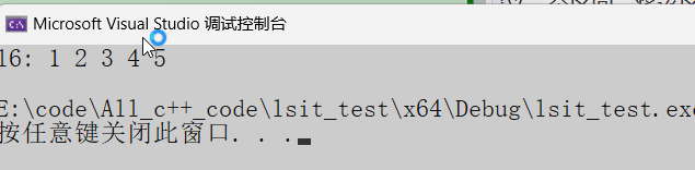 using namespace std;int main() {// 使用 vector 构造 listvector<int> v = { 1, 2, 3, 4, 5 };// 使用 input_iterator 构造 listlist<int> l6(v.begin(), v.end()); // 通过 vector 的迭代器初始化 listcout << "l6: ";for (int x : l6) cout << x << " "; // 输出:1 2 3 4 5cout << endl;return 0;