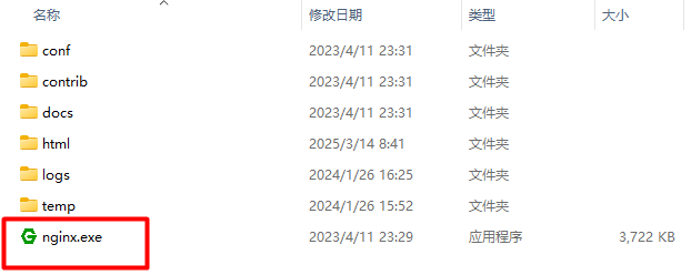打开下载的文件位置,找到nginx.exe,双击启动即可。