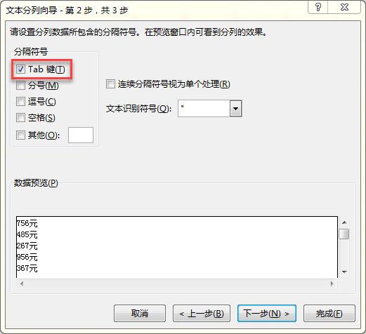 备注:在【其他(O)】后的文本框中键入字符后,前面的方格会自动打上对勾。