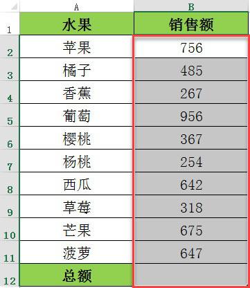 第八步:长按左键下拉选中【B2:B12】单元格。