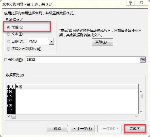 第六步:左键单击【列表数据格式】选中的【常规(G)】,左键单击【完成】按钮。