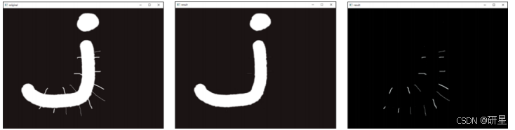 黑帽运算是用闭运算图像减去原始图像的操作。黑帽运算能够获取图像内部的小孔,或前景色中的小黑点,或者得到比原始图像的边缘更暗的边缘部分。