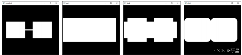 - dst 代表经过形态学处理后所输出的目标图像,该图像和原始图像具有同样的类型和大小。