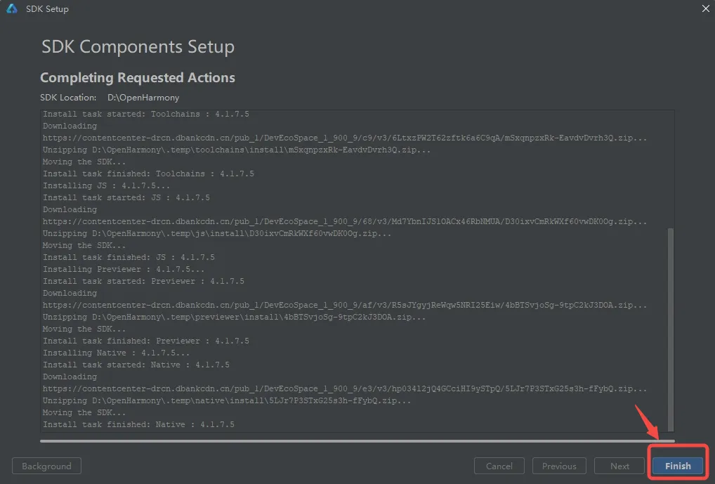 5)当【Finish】变亮时,证明下载完成,点击【Finish】