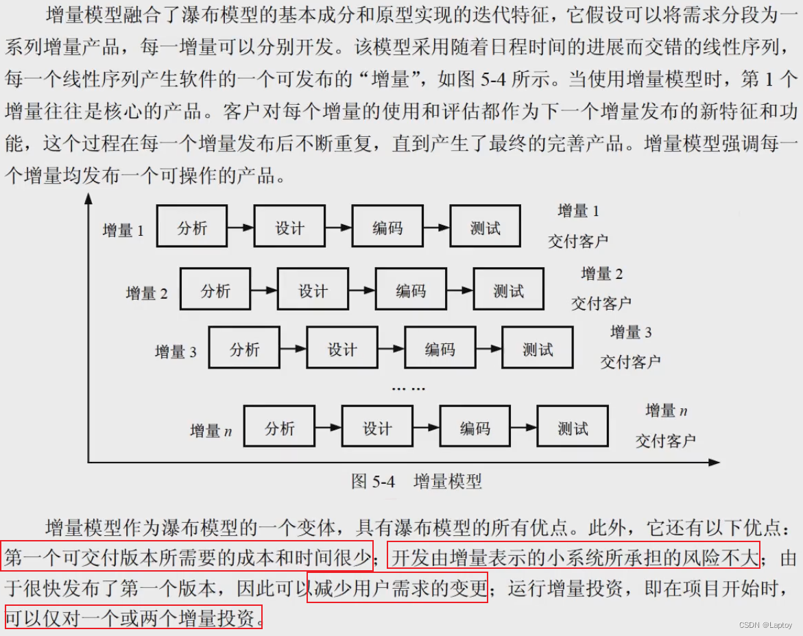 增量模型拥有瀑布模型的所有优点,它主要的特点是可以快速构造可运行的产品