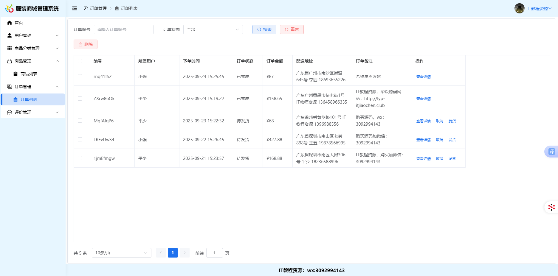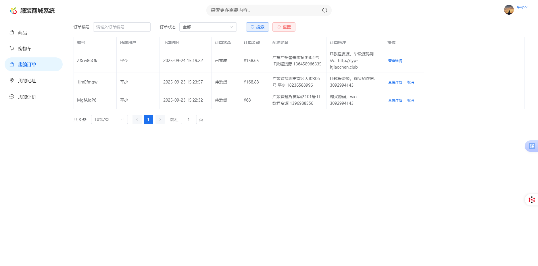 3.我的订单:分页查询、取消订单、查看详情、确认收货、评价
