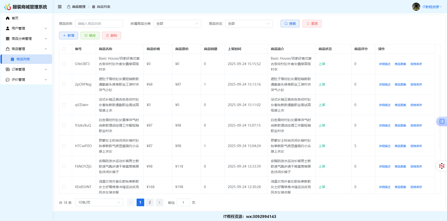 4.商品管理:新增、修改、删除、分页查询、详情、商品图集、规格库存