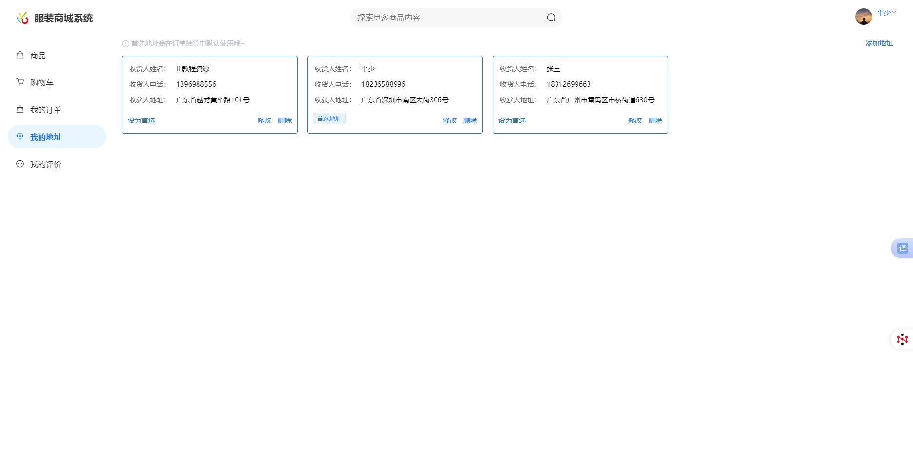 4.我的地址:添加地址、修改地址、删除地址、设为首选