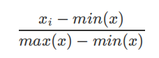 数据归⼀化公式:公式中min(x)表示数据中的最⼩值,max(x)表示数据中的最⼤值。