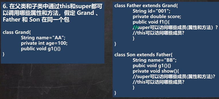private受保护 同包 同类 子类 可以使用 不同包不可使用