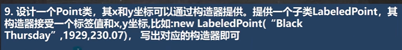 package Homework09;public class Homework09 {public static void main(String[] args) {LabeledPoint blackpeace = new LabeledPoint(128, 213.9, "blackpeace");}
