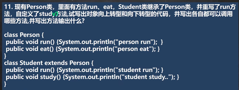 package Homework11;public class Person {public void run(){System.out.println("person run");}public void eat(){System.out.println("person eat");}