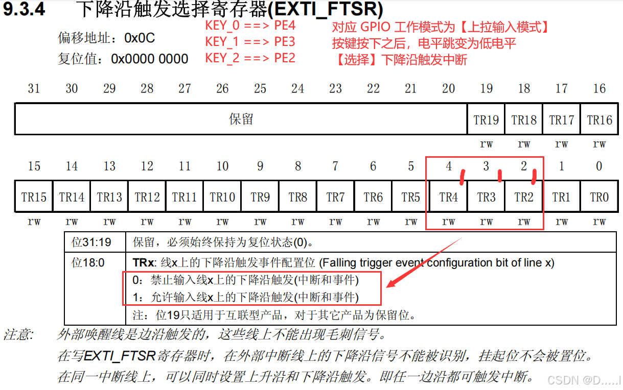 - 3.3.4 外部中断上升沿或者下降沿触发寄存器配置
