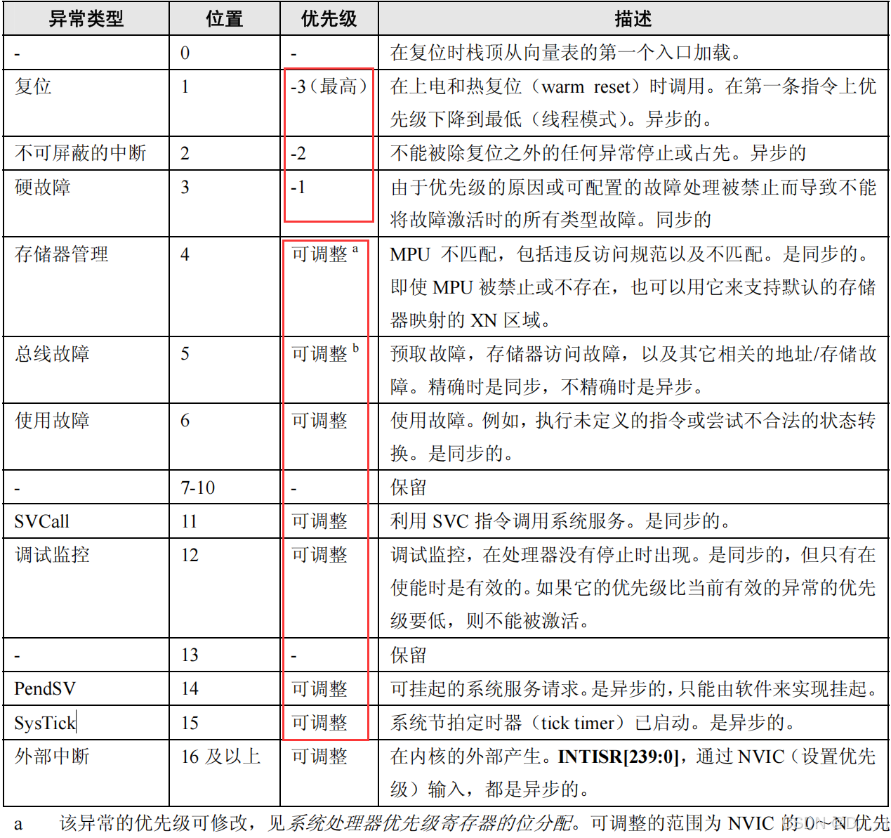 - RESET 复位 对应优先级为 -3, 最高优先级,且无法修改