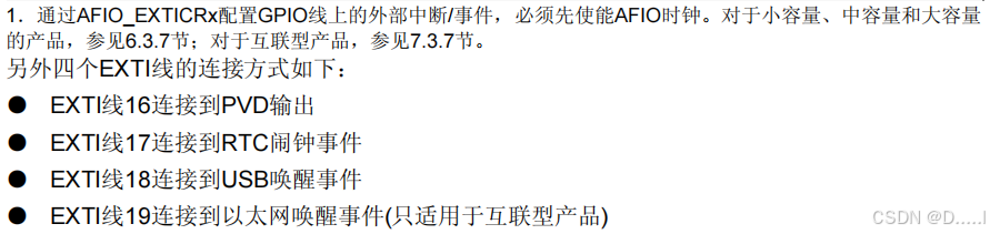 - 其中 AFIO_EXTICR1 ~ AFIO_EXTICR4 是用于控制外部中断线内容