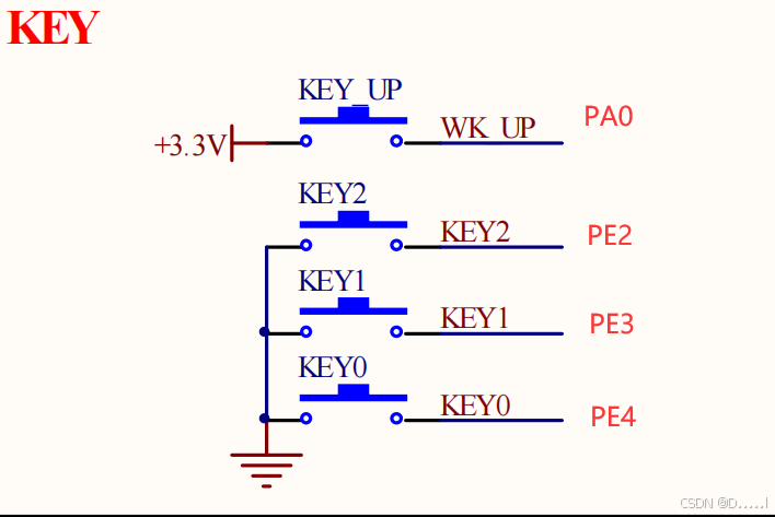 - PE2 PE3 PE4 ==> GPIO 工作模式为【上拉拉输入模式】