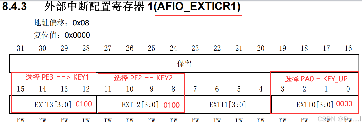 AFIO_EXTICR[0] <> 对应寄存器名称 AFIO_EXTICR1