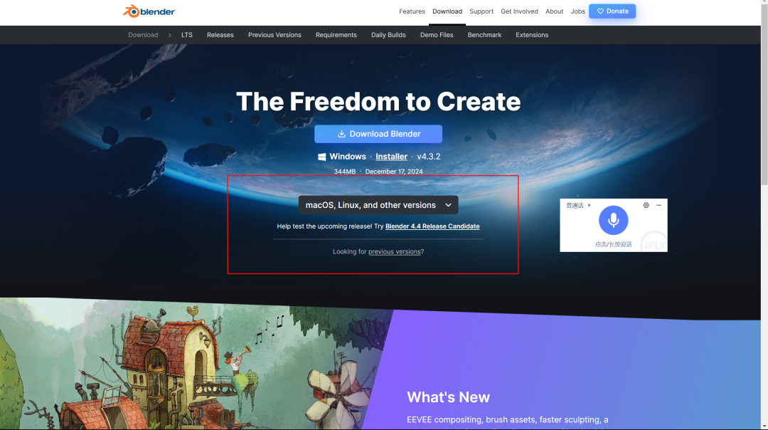 访问 Blender 官网,选择适合你系统的版本下载安装。