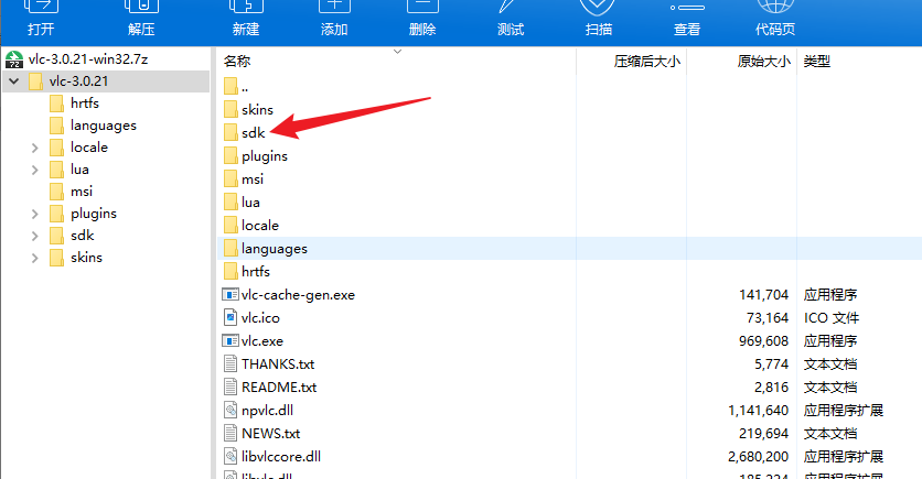 官方首页的播放器下载,并没有提供单独 sdk 文件,需要下载 7z 压缩的播放器,然后解压提取里面的 sdk 目录