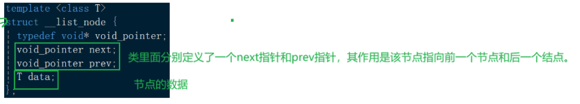 而这个_list_node类中分别定义了一个next指针和prev指针,其作用就是分别指向前一个结点和后一个结点。还定义了存储结点数据的变量。