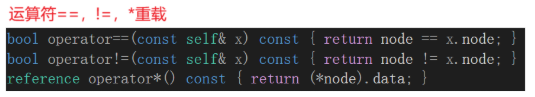 与==运算符相反,只需要判断两个迭代器中的结点指针是否不相同即可。