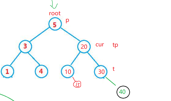 加入说删除的点是20 ,cur = 20,怎么办才能把20 节点给干掉,主要就是谁要往20 这个节点放, 放10?n那10 的右边要是有呢,假如说10 的右边是15,先假设一下,那也就是说5 的 右节点直接等于10,那10 的右边的数据15往哪里放呢,或者说30放哪里,所以说就很麻烦