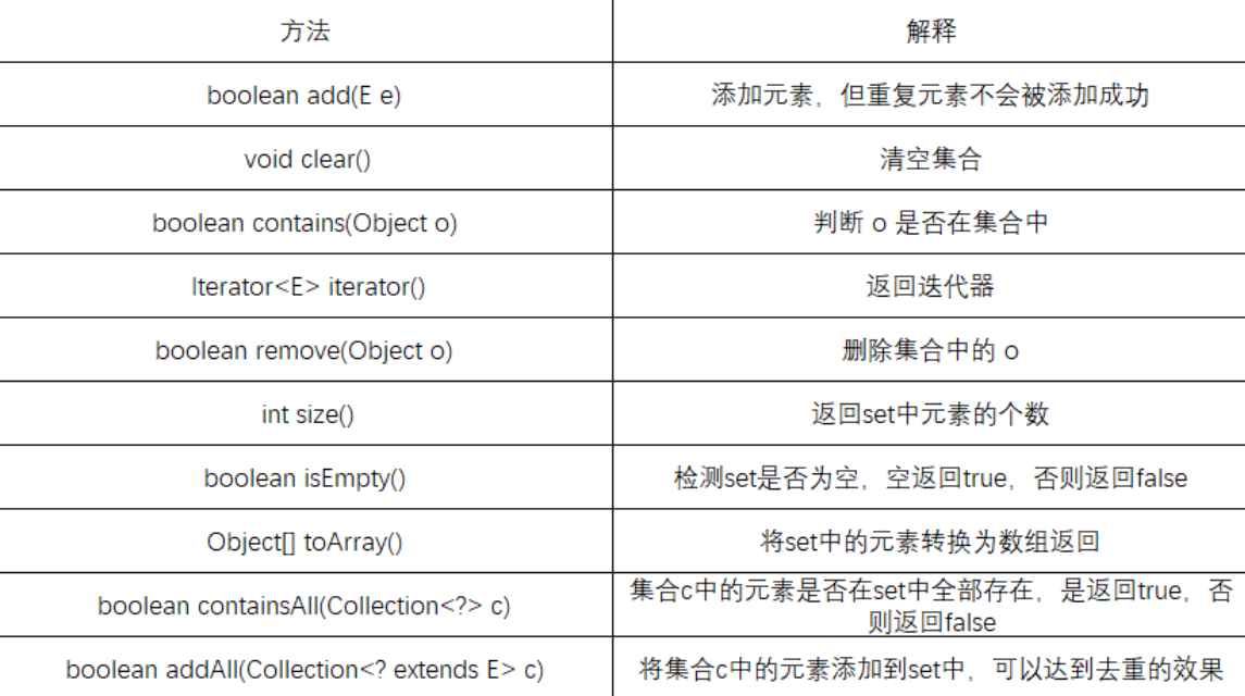 Set 的官方文档https://docs.oracle.com/javase/8/docs/api/java/util/Set.html Set与Map主要的不同有两点:Set是继承自Collection的接口类,Set中只存储了Key。