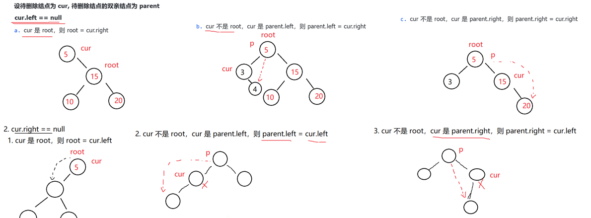 b. cur不是root,cur是parent.left,则parent.left=cur.right