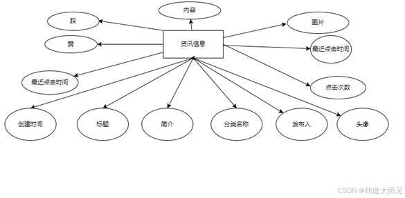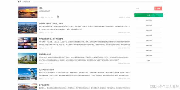 用户点击资讯信息,在公告资讯页面的输入栏填写标题,进行搜索,然后查看标题、分类名称、发布人、点击次数、收藏数、图等信息,还可以可以点击收藏或者点赞等操作;如图4-5所示: