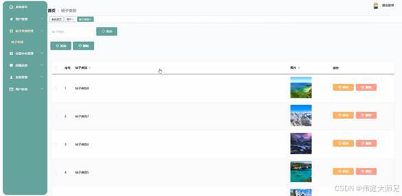 管理员点击产品展示管理;在产品展示页面对产品名称、产品类别、产品标题、发布人、点击次数、评论数、收藏等信息,进行搜索、新增、修改或删除产品等操作;如图4-11所示。