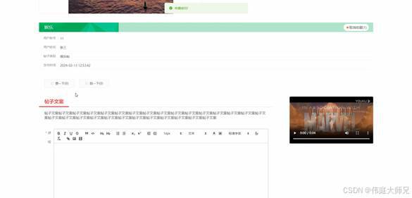用户点击产品详情,可以查看产品标题、产品文案、用户账号、用户姓名、产品类别、发布时间、点赞次数、点踩次数、收藏数等信息;还可以进行收藏或者评论等操作;如图4-4所示: