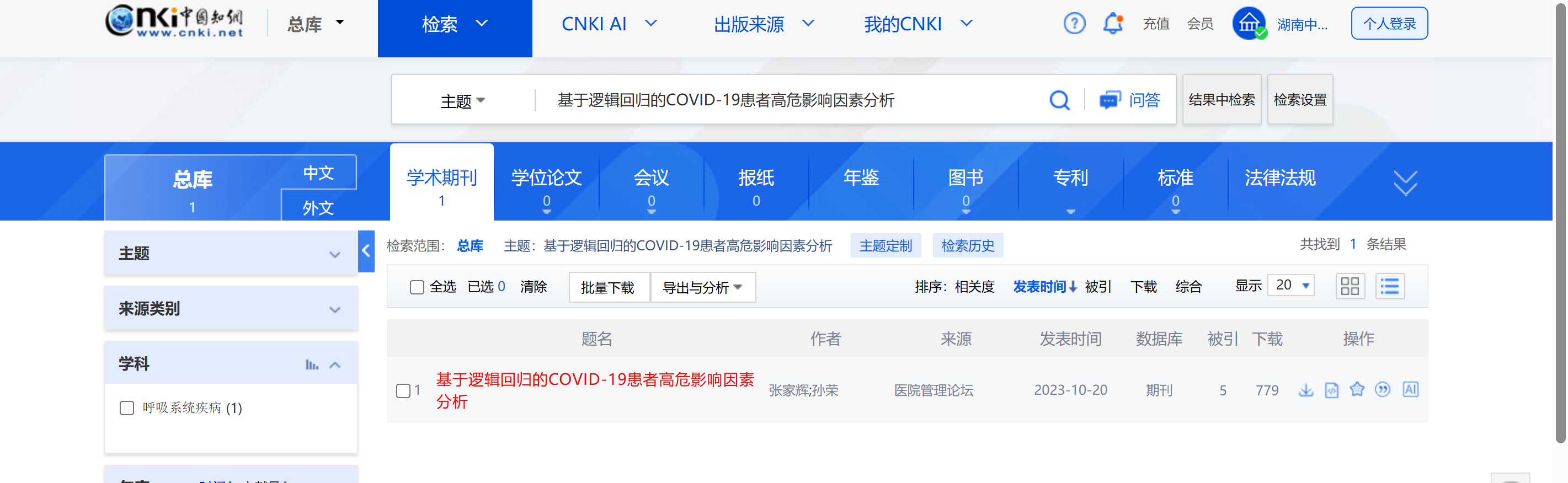 例: 张家辉,孙荣.基于逻辑回归的COVID-19患者高危影响因素分析[J].医院管理论坛,2023,40(10):36-