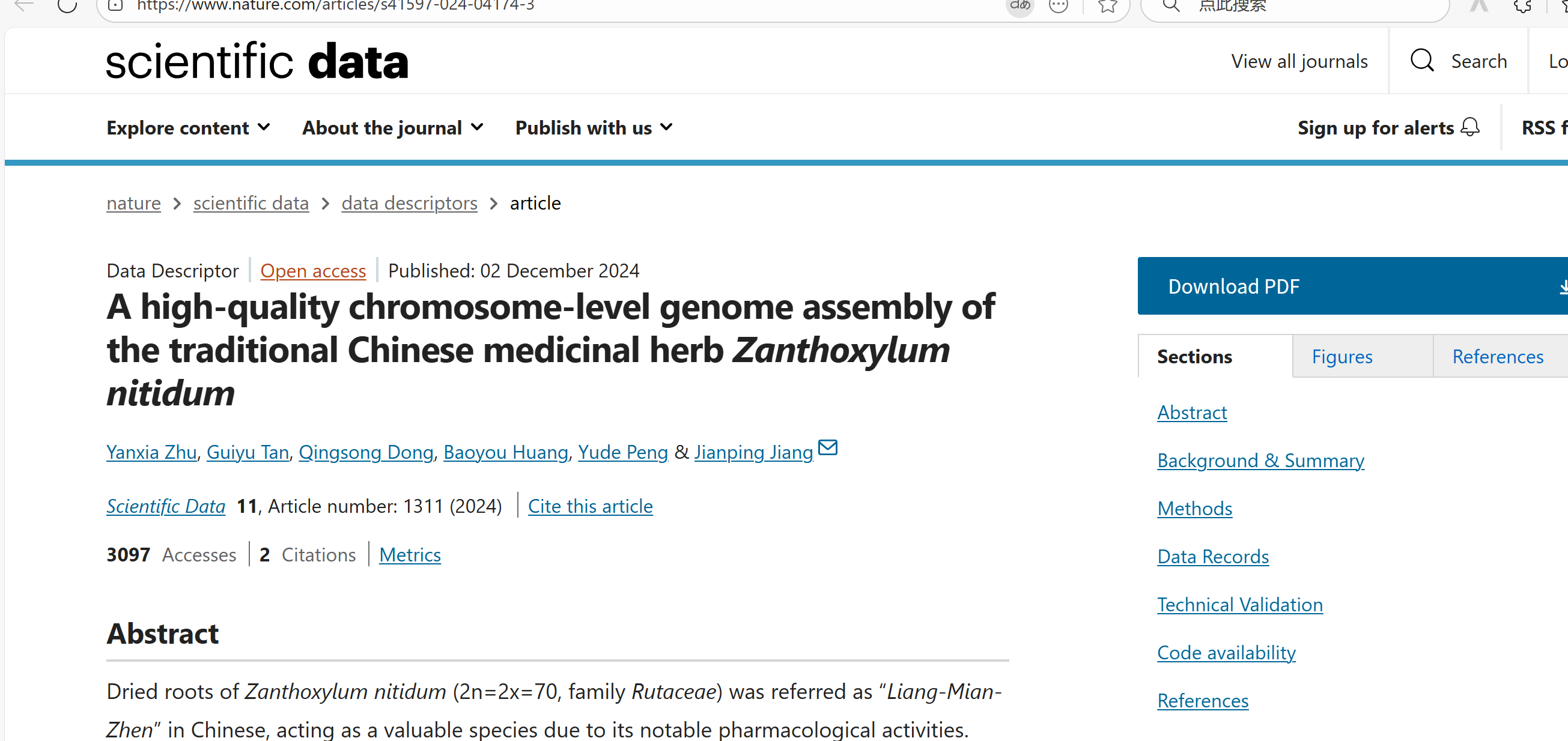 例如:Zhu, Y. et al. A high-quality chromosome-level genome assembly of the traditional chinese medicinal herb zanthoxylum nitidum.