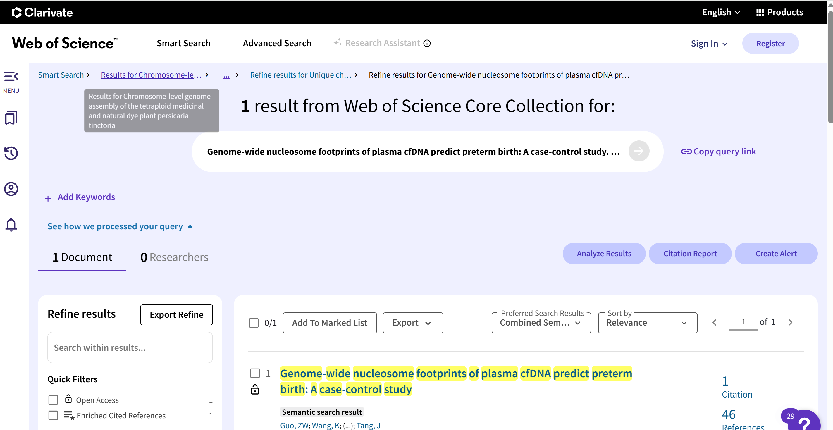 例:Guo Z, Wang K, Huang X, Li K, Ouyang G, Yang X, Tan J, Shi H, Luo L, Zhang M, Han B. Genome-wide nucleosome footprints of plasma cfDNA predict preterm birth: A case-control study. PLoS medicine. 2025 Apr 15;22(4):e1004571.