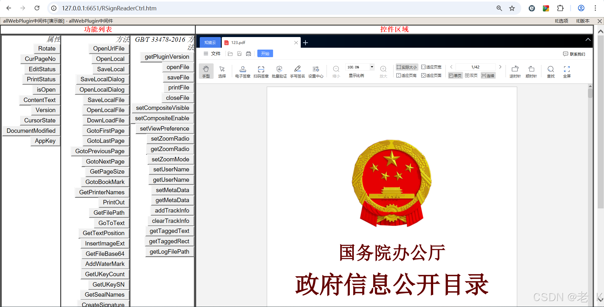 安装完成之后,在浏览器地址栏输入"http://127.0.0.1:6651",即可查看演示demo首页。打开对应的示例,体验演示效果。allWebPlugin.IE扩展导入之后,可以自动检测浏览器打开页面是否存在控件,如果存在则使用IE内核渲染,实现与Chrome、Edge等浏览器无缝衔接。