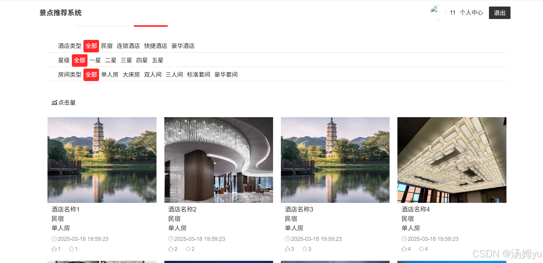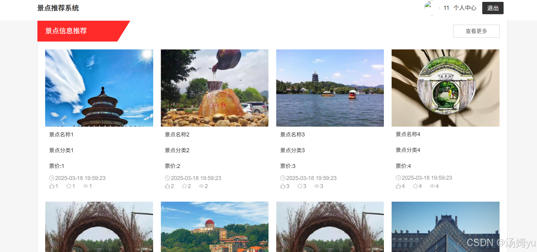 对于旅游行业而言,该推荐系统有助于实现旅游资源的优化配置。通过精准推荐,能够引导游客前往一些相对冷门但具有独特魅力的景点,避免热门景点的过度拥挤,促进旅游市场的均衡发展。同时,系统可以根据游客的反馈和评价,为旅游企业提供有价值的市场信息,帮助其了解游客需求的变化趋势,进而调整和优化旅游产品与服务,提升旅游企业的竞争力和市场适应性,推动整个旅游行业的创新与升级。