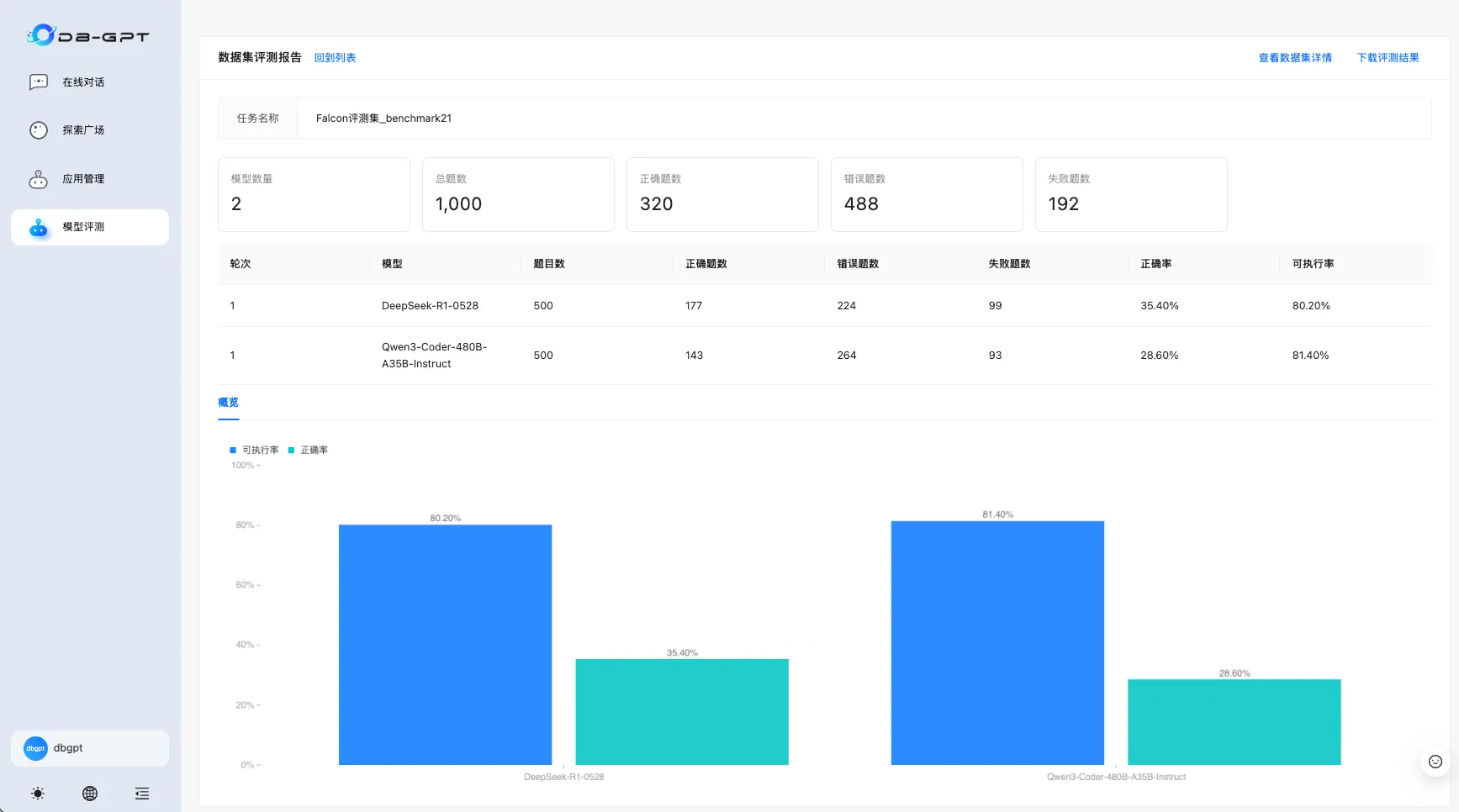 🍀 DB-GPT支持基于Falcon Text2SQL评测集的LLM评测功能