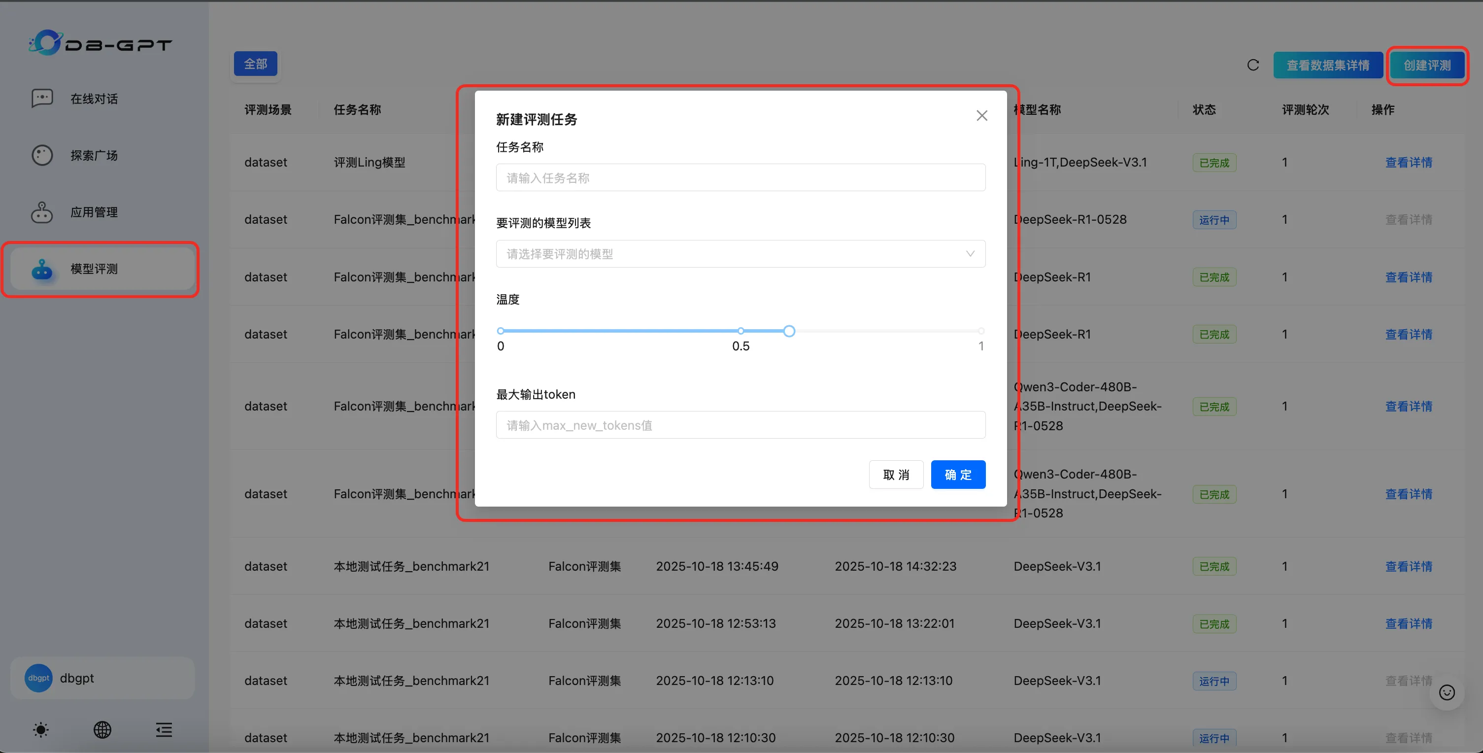 - Step1: 点击"创建评测"按钮,创建评测任务