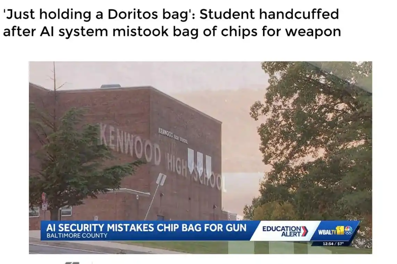 一包薯片引发的八辆警车出动——这听起来像黑色幽默的剧情,却在现实中真实上演。美国马里兰州的高中生怎么也没想到,放学时口袋里露出的薯片包装会被学校AI监控系统判定为手枪,最终导致自己被持枪警察按倒在地。这场闹剧暴露了AI识别技术亟待解决的核心问题:如何降低误判率?