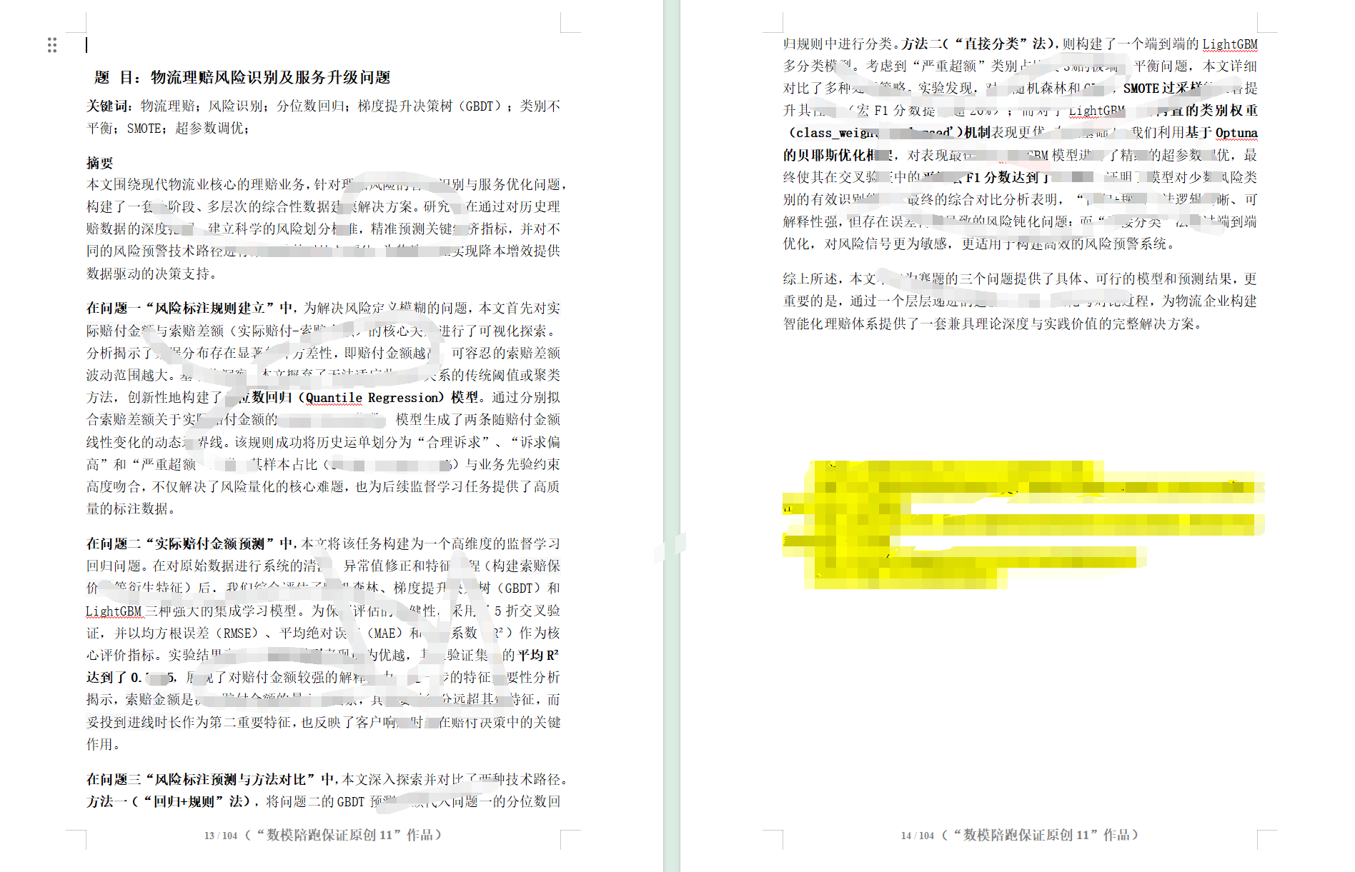大家好呀,从发布赛题一直到现在,总算完成了2025年mathorcup大数据竞赛B题【物流理赔风险识别及服务升级问题】完整的成品论文。