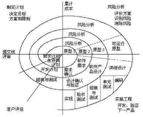 螺旋模型是一种将迭代开发与系统化、受控的瀑布模型相结合,并特别强调风险分析的软件开发过程模型。它由巴里·博姆在1986年提出,其核心在于通过一系列迭代循环(称为“螺旋”),逐步构建和细化系统,每个循环都包含四个象限的活动。