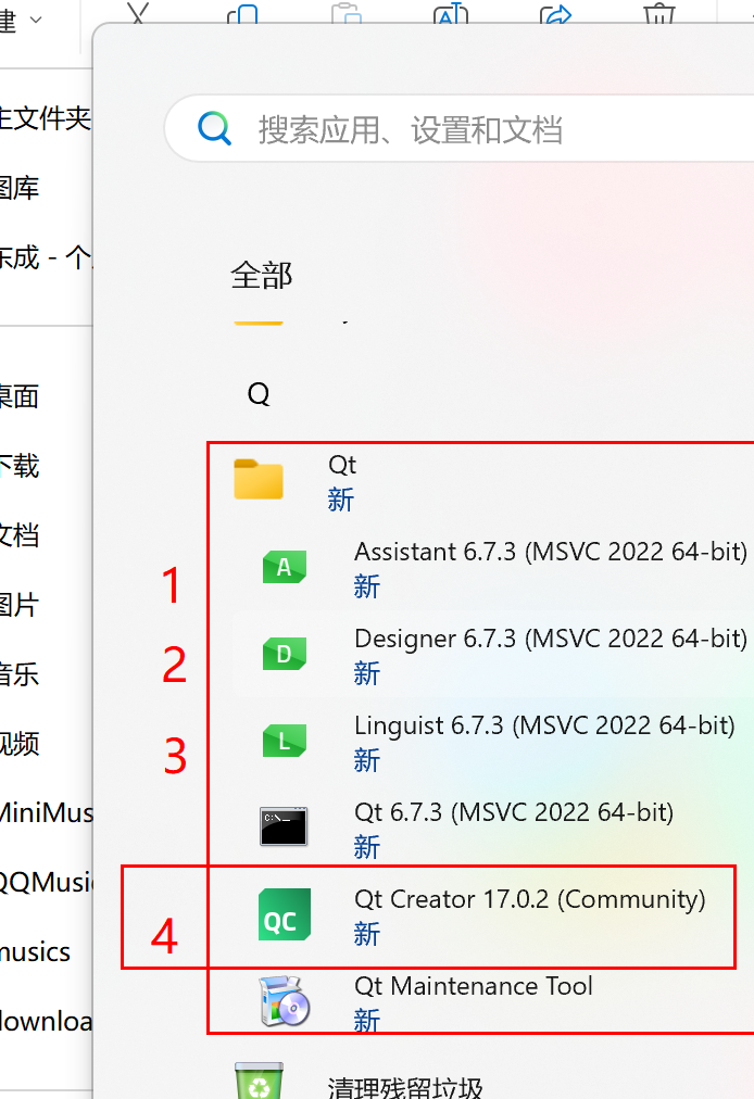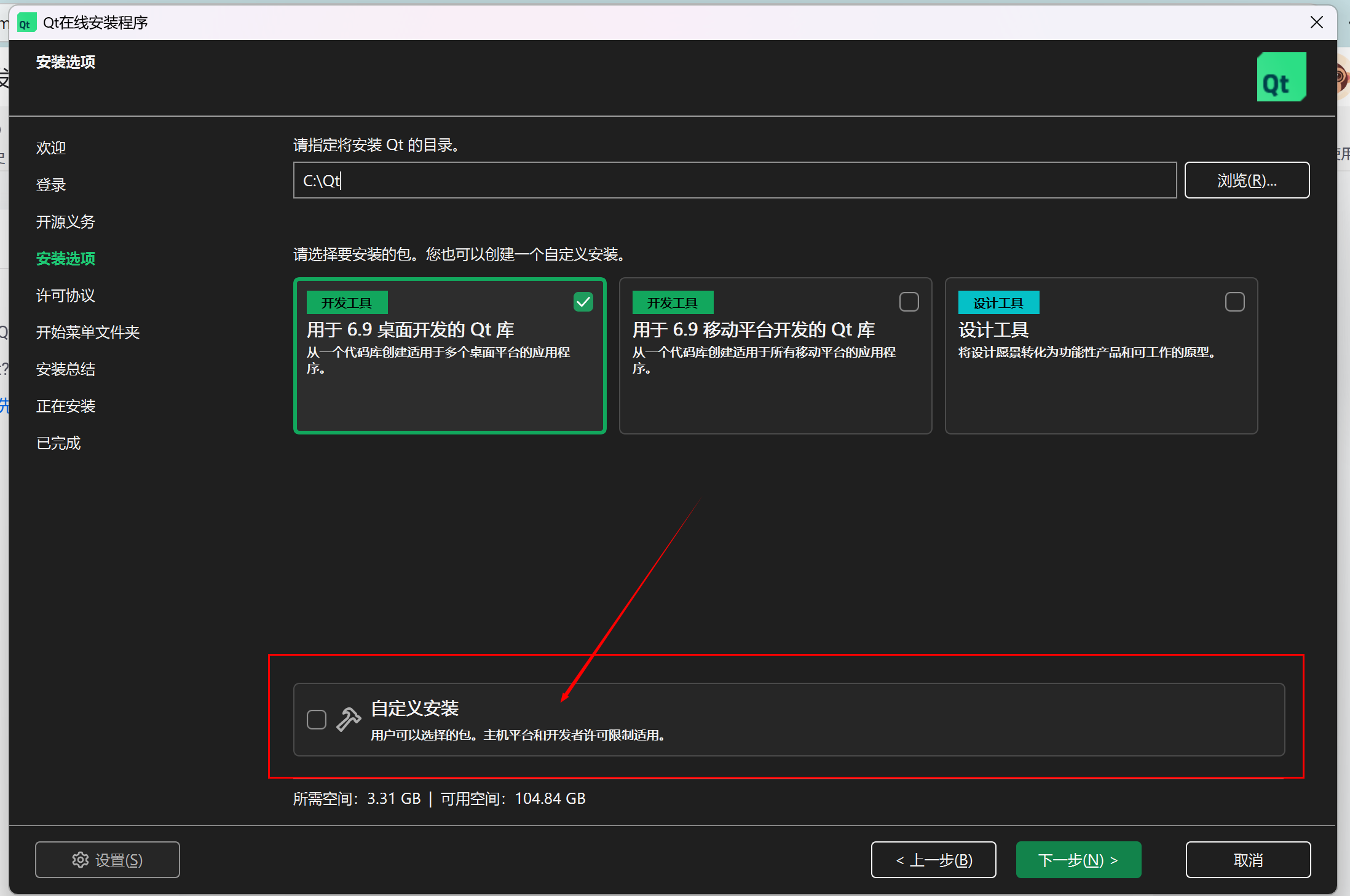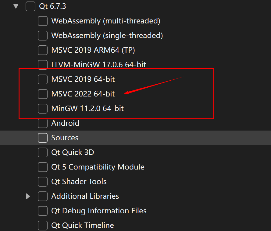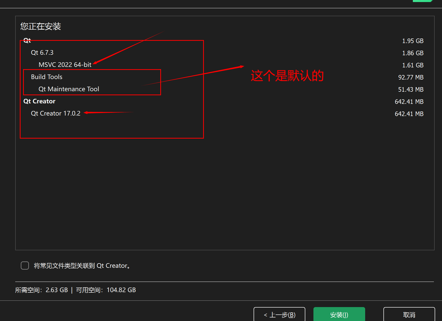 - 安装Qt必须要安装的两大组件: 一个是编译器(推荐MSVC 2022)