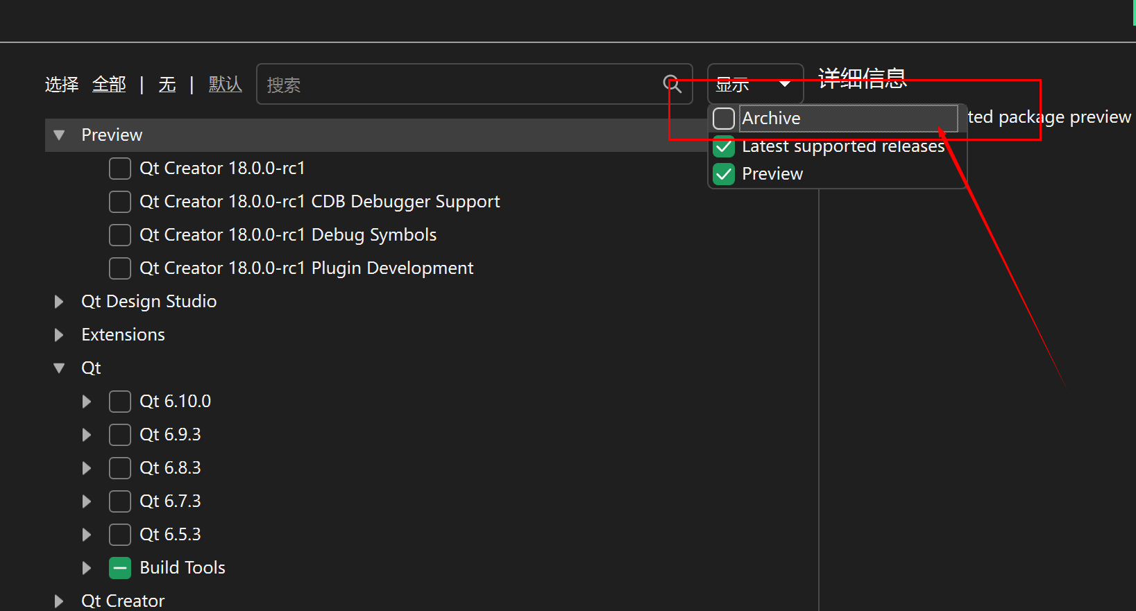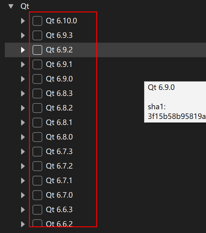 - 勾选后点确定,然后你在Qt选项中会看到历史所有版本,一直到最老的Qt5.15: