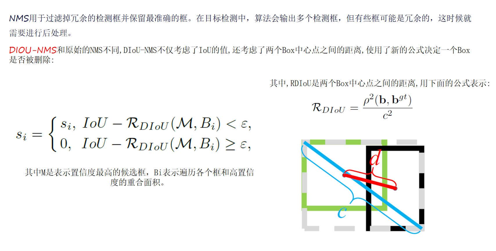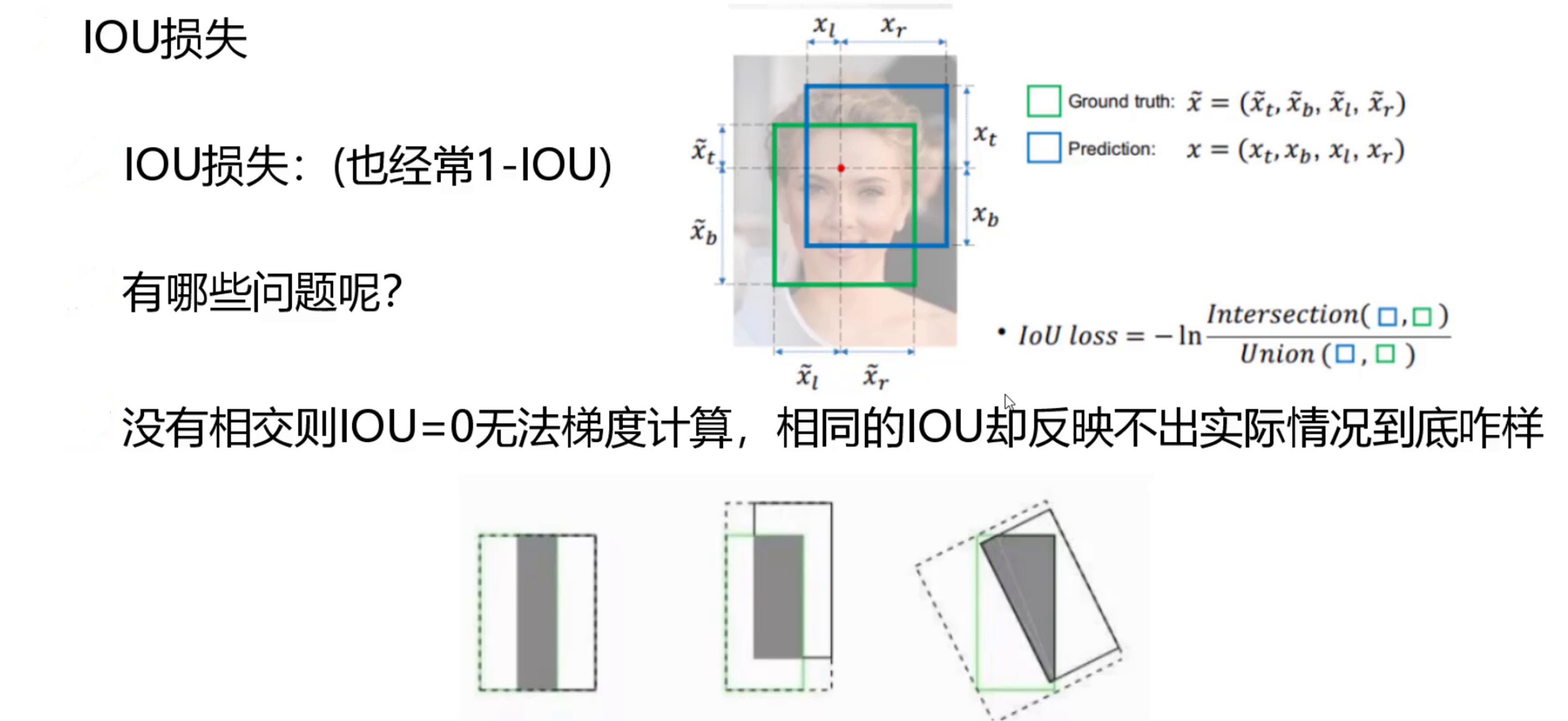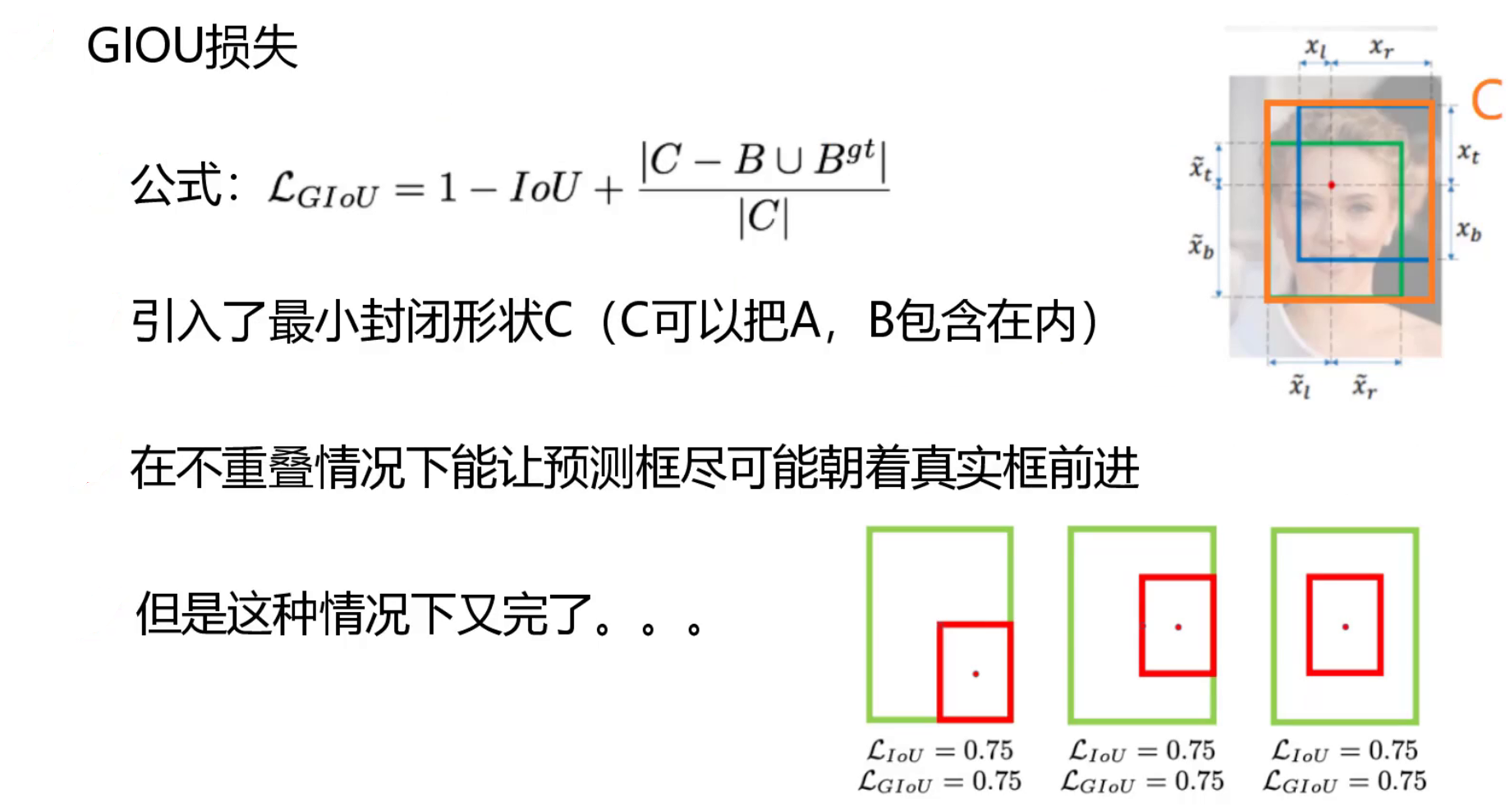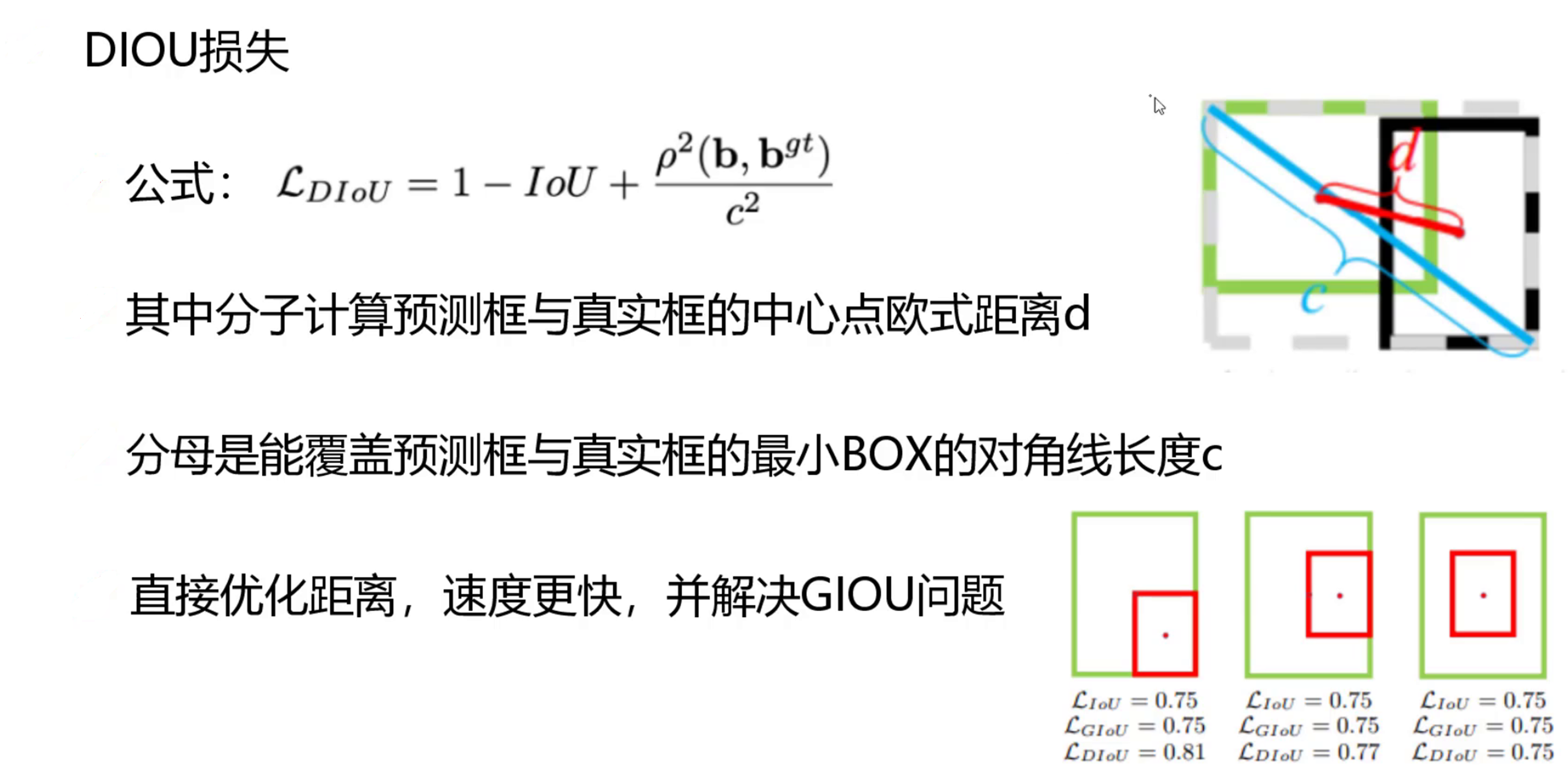 4 IOU损失优化 就是原本是直接对IOU值进行求损失值,现在加上一个IOU框的中心点距离的损失
