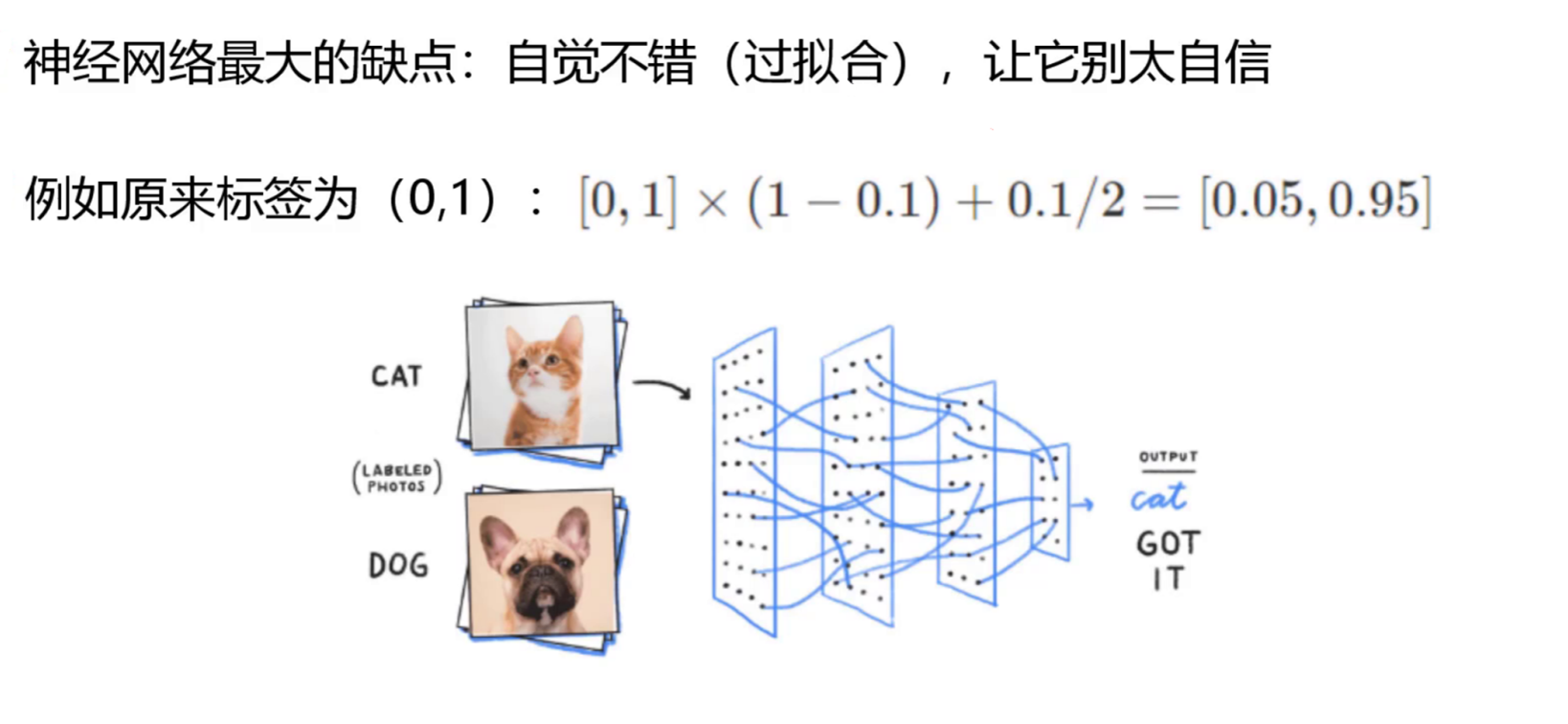 3 平滑处理 对每一个类别不绝对化,归一化处理例如(1,0)改成(0.95,0.05)